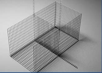 let two adjacent stone cage meshs be perpendicular to the ground.on both sides prepare the spiral allgnment as showed i nthe schematic a 90 angle at the mesh connection,adjust the angle to make the spiral itself inertia just drop it.